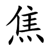 5. (Động) Cháy khét, cháy đen. ◎ Như: "thiêu tiêu" 燒焦 cháy đen.